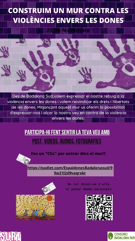 El Punt Òmnia Casal Cívic Sant Roc dona suport a la iniciativa del Consorci de Badalona Sud i de l’Espai Dones que ens conviden a la construcció d’un mur digital de reflexió i de rebuig a les violències envers les dones i d’aquesta manera commemorar el 25 de novembre. Oferim […]