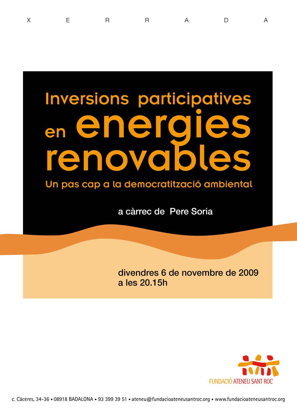 L’Ateneu ens convida a una xerrada que tindrà lloc a l’Ateneu el proper divendres dia 6 de novembre a les 20h15 del vespre. El tema serà les inversions participatives en energies renovables, una manera de col·laborar en la millora del medi ambient. Esperem la vostra participació. Grup de Medi Ambient […]