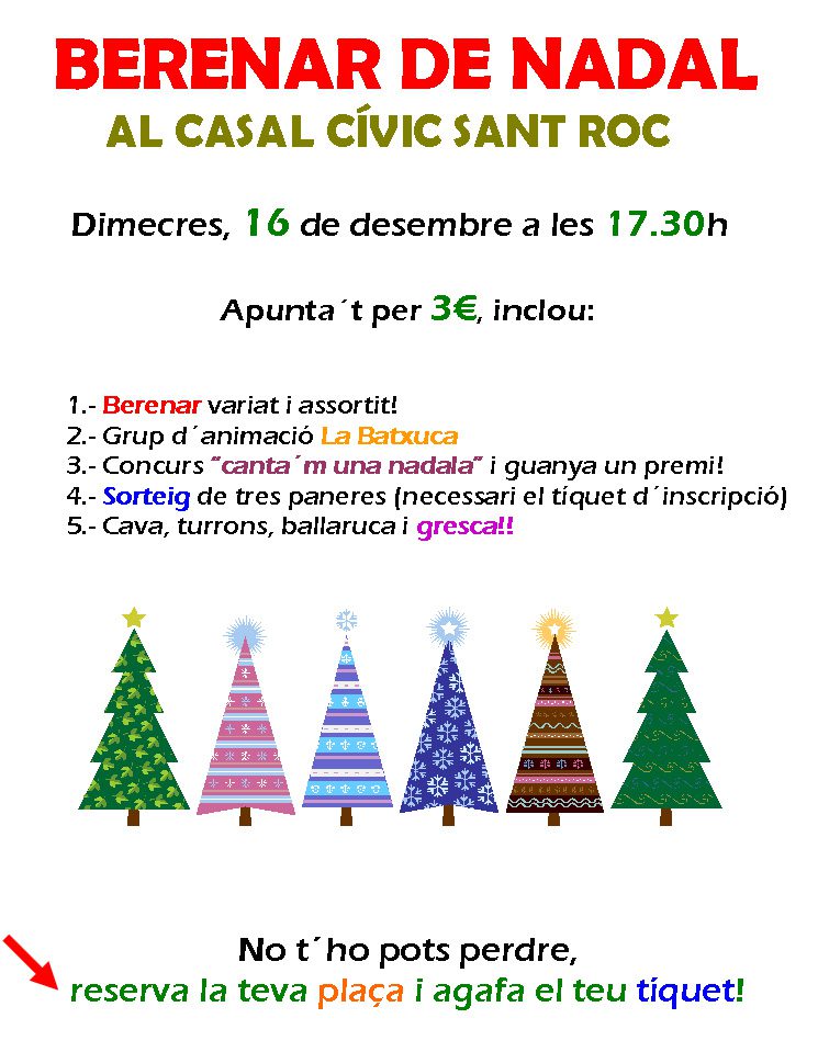 El Casal Cívic Sant Roc organitza el Berenar de Nadal El dimecres 16 de desembre a les 17.30h, apunta´t a la festa ! no t’ho pots perdre! per 3 € Menú de la festa: >> Berenar variat i assortit! >> Grup d’animació La Batxuca >> Concurs “canta’m una nadala” i […]